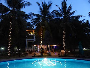 Godetevi il piacere di fare il bagno in questa fantastica piscina a forma di conchiglia, circondata da grandi palme da cocco illuminate di notte. Indimenticabili sono le esperienze notturne sotto il cielo stellato, soprattutto nelle notti di luna piena.